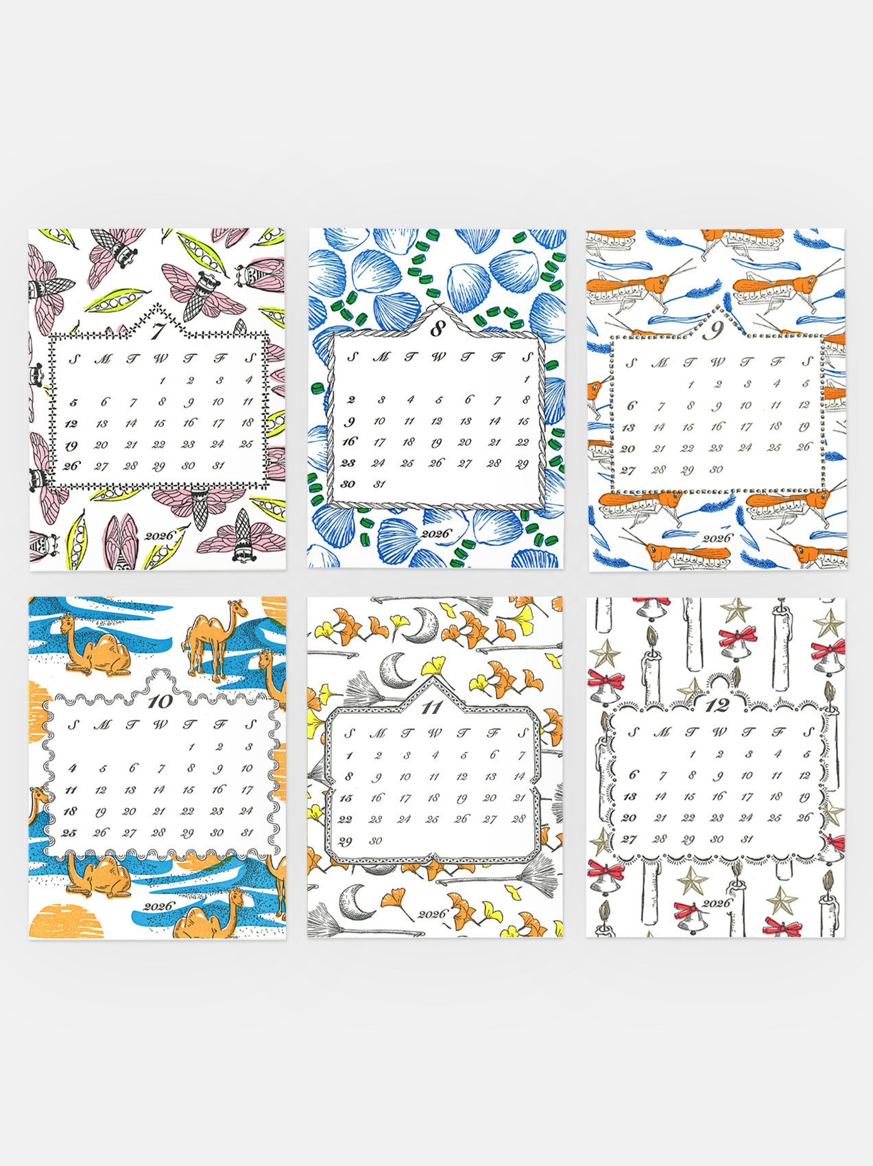 2026년의 하루하루를 감각적으로 기록할 수 있도록 설계된 〈2026 Letterpress Calendar〉는 툴프레스 특유의 클래식하고 위트 있는 일러스트레이션으로 채워진 월별 캘린더입니다. 손에 닿는 질감과 인쇄의 깊이를 중요하게 여기는 레터 프레스 기법으로 세심하게 제작되어, 매월 넘기는 순간마다 시간이 남긴 흔적과 감각을 경험하게 합니다. 아담한 엽서 사이즈의 달력은 책상, 책장, 주방, 벽 선반 등 어디에 두어도 자연스럽게 공간과 어우러지며 일상의 리듬을 따뜻하게 만들어 줍니다.