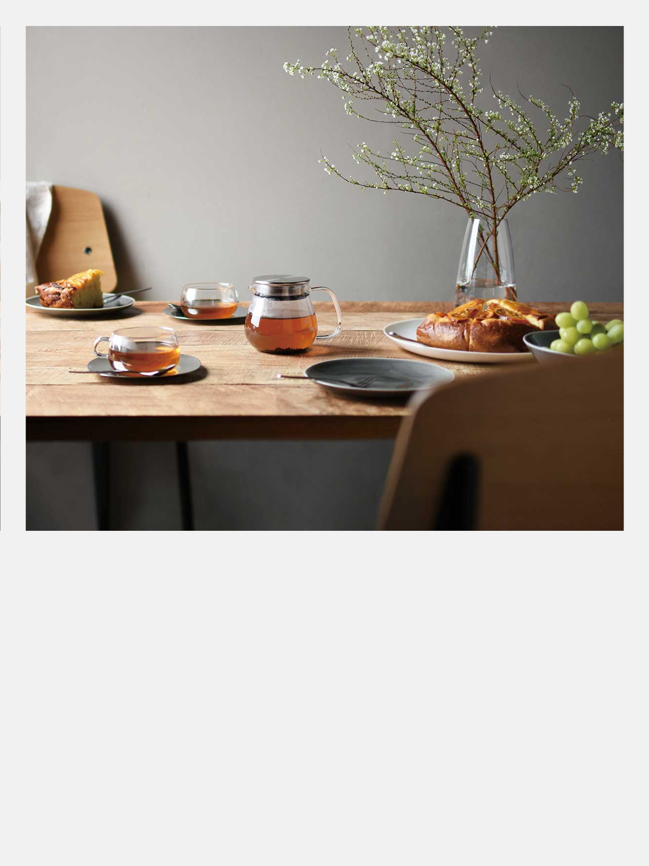 ‘원터치’라는 이름처럼 뚜껑 안에 스트레이너(차 여과망)가 통합되어 있어 차 잎을 넣고 바로 우려내기 수월합니다. 스트레이너 일체형 뚜껑 덕분에 내부가 깔끔하고 차 잎이 자유롭게 회전할 수 있는 공간이 확보되어 차의 향미와 우러남이 보다 원활하다는 점이 장점입니다. 손잡이는 유리임에도 손잡이가 크게 설계되어 있어 물을 많이 넣어도 안정적으로 들기 쉬운 구조이며, 식기세척기 사용이 가능하여 일상에서 즐겨 사용하기 용이합니다.
